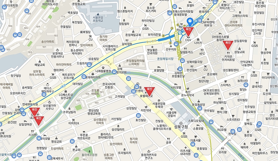 목적지로 ‘성신여대역’을 검색하자 5번째 확진자가 방문한 영화관과 분식집, 마사지점 및 슈퍼 등이 지도에 빨간색 역삼각형으로 표시되는게 보일겅에ㅛ. 사이트를 제작한 학생들은 “사이트에 들어온다고 해서 우리에게 수익이 생기는 것이 아니다”며 “단지 도움이 됐으면 좋겠다”고 알렸습니다. 해당 사이트는 데스크톱 컴퓨터와 스마트폰에서 모두 접속할 수 있습니다.